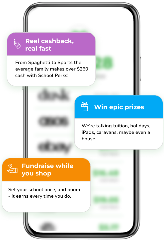 We help Aussie families with school-aged kids slash everyday costs, through cashback on your everyday shopping & unlock real rewards (think holidays, fuel, and even school fees paid!), and make a real difference in their school community, without selling a single raffle ticket or baking a single cupcake.